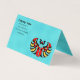 Det här vecket över det stående affärskortet är ett vibrant akvblått färg med en skarabönt som är svart med färgstarka markeringar i rött, blått och gult. Anpassa all information på framsidan, baksidan och insidan med mallarna.