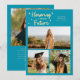 Modern and whimsical graduation announcement photo card featuring 3 photos on the front with a text that says "Honoring a bright future." Add the graduate's name, information, and message to personalize this card. Aqua blue background.