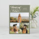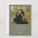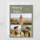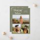 Modern and whimsical graduation announcement photo card featuring 3 photos on the front with a text that says "Honoring a bright future." Add the graduate's name, information, and message to personalize this card. Sage green background.