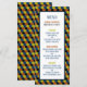 Dessa menyer är perfekt för alla som planerar ett trendig party firande eller ett evenemang. Utformningen har en geometrisk mönstrad bakgrund i snyggt i svart, blå, orange och gult med ett dekorativt blått gräns ram och avslutas med motsvarande redigerbara ordalydelse. Den enkla designen kan vara personlig till kostym för din speciella händelse och kommer att vara perfektens menyns rackkort för alla moderna teman party, inklusive: möhippor, förlovningar, möhippor, födelsedagsfester och mycket mer.