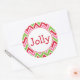 En ljus rosa, grönt och röd chevron mönster dekorerar dessa glupska helgdag-klistermärken. Designen kommer från originalteckningen.