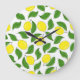Bright Lemons Grönt Löv Mönster Stor Klocka