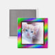 En något annorlunda version av ett fyrkantigt foto ram som du kan fylla med en egen bild. Ljusa färger. En söt födelsedagspresent för bästa vänner eller föräldrar till skolbarn. Underbar magnet för en student i high school.