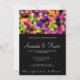 En romantisk inbjudan och inbjudan från elegant bröllop med en flerfärgad abstrakt mönster i ljus utanför fokus som skapar en glansig, glänsande bakgrund som kallas bokeh. Vibrant och levande i neon färg är fushcia rosa, kalkgrönt, royal lila och tangerinisk orange. Anpassa med dina egna detaljer.