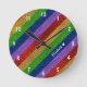 Bright och Sparkly Rainbow Faux Glitter Stripe Rund Klocka