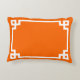 Dekorativ vivid tangerin orange och vit geometrisk rektangulär gräns-accentkudde för stil i grekiska Nyckel. Anpassa den heltäckande bakgrunden och motifgrafiken i färg genom att välja färger eller matcha din hemdekoration. Vi har andra grekiska Nyckel gräns för andra formade produkter. Skicka en begäran om du behöver en annan gåva.