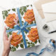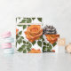 Bright Orange Roses With Green Leaves On A White Background With A Painterly Texture To Evoke A Warm Summery Vibe