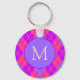 Bright Pink and Blue Argyle Pattern Monogram Nyckelring