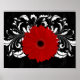 Tillsätt en fin feminin-beröring med den här söta ljusröda daisyn från gerbera mot en svart och vit dammsnurrande bakgrund. Kute och chic, som kan vara ett modernt tillbehör med en pulserande röd blommigt motiv och snurrande vita vinstockar och scrollsar på svart fält. Trevligt för kvinnor, flickor eller en naturälskande flickvän.