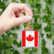 Bright Red Maple Löv Canada Flagga Fyrkantig Silverfärgad Nyckelring