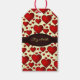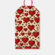 En mönster av ljusröda romantiska hjärtan, några stora små på gultens bakgrund. Det är intressant att tittar struktur mellan hjärtat och ge. Skriva en namn eller annan text inuti en finare mörk röd/brugnosoval namnskylt.