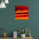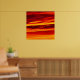 Den här designen har en bild av molnen i olika skuggor av gult och orange mot en röd bakgrund. Det är en vacker solnedgång.