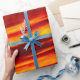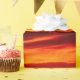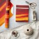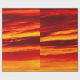 Den här designen har en bild av molnen i olika skuggor av gult och orange mot en röd bakgrund. Det är en vacker solnedgång.