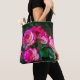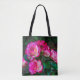 Bright ro i blommigt trädgård stänk över handlig tote-väska.