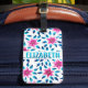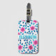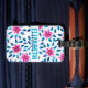 Bright Rosa Blåa blommor Löv Acrylic Monogram Bagagebricka