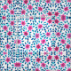 Bright Rosa Blåa blommor Löv Acrylic Paint Tyg