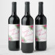 Bright Rosa Blommigt Bröllop Vinflaska Etikett