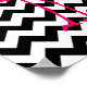 En retro stil-ljus rosa flamingo silhuett eller form mot ett kontrasterande svart och vitt zigzag mönster.