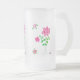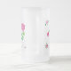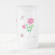 Ett söt vitt frostat glas mugg med en delikat utformning av rosa blommor, från ett handmålat pappert kollage av Judy Adamson.