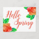 Brevkort med blommigt och fetstil med rosa ros och frasen "Hej Vår".