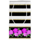 Det är ett vackert rosa ros gräns och ett vågrät rand mönster i svart, vitt och guld.