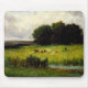 Visa er stil och förfining med reproduktionen av en bra art biet med titeln "Bright Scene of Cattle nära Stream" av Edward Mitchell Banister. Boskapscen i ett öppet fält nära en ström. Cirka 1890.