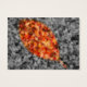 Ett selektivt höstfoto i färgaden av fallna kräpmyrtelösa löv, med en guld-framtagen löv-form av klarrött, orange och gult mot en svart och vit bakgrund.