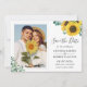 Solrosgrönt Eukalyptus Photo Bröllop spara datum Card. (1) Om du vill göra ytterligare anpassningar klickar du på länken "anpassa ytterligare" och användor verktyg som är utformat för att ändra mallen. (2) Om du föredrar Avsluta /projektionsyta kan du överväga att välja Papper projektionsyta.