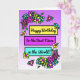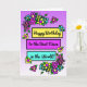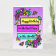 färgad hand plockade-blomma och fjärilshus-lila, gult och teal-Grattis på födelsedagen-kort för din brorsdotter.