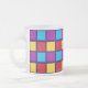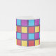 Bold and bright checked pattern with red, blue and yellow squares, many items personalized with block text.