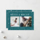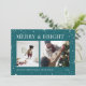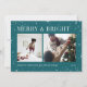 En modern och festlig design för dina semesterhälsningar med två foton som är placerade sida vid sida, på en pulserande teal bakgrund som är prickad med stjärnor. "Merry and Bright" visas överst i klassisk serif-skrift, med "Season's Greetings" i din familj namn och året längs grund. En glad och färgstark design inför jul 2021.