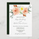 Bröllopsinbjudan till sommarblommor designad med kluster av blommar med vattenfärg i mjuk sommar-färg. I texten på framsidan finns: Bride och Groom:s första Namn, Bröllop Datum, Tid, Plats och Mottagning som ska följas. Baksidan är en bakgrund med djup grönt i blommigten. Om du vill anpassa dig infogar du bara dina uppgifter i vår enkla mall och ersätter exempeltexten. Se till att du hittar passande kort och tillbehör i hela samlingen för sommarblommor i Bröllop.