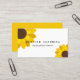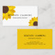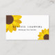 Blommigt affärskort för en förskolelärare, skollärare, lärare eller liknande med två stora solblommor mot en vit bakgrund. Baksidan är en matchande gult för rik med roligt svart typsnitt.