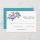 Modern blommigt Bröllop OSA Card med peonier och ro i rosa med grönsakssprickor i tårblått och grått. Baksidan är en passande skugga av djärvt och vibrerande tealblått. Det här lysande Bröllop-responskortet i juvelton färg är underbart för en sommartid i bröllop.