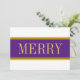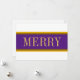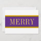 Festive "ribbon candy" streck markerar vackert "MERRY" i ett stort fet elegant-teckensnitt som trumpeteras över hela designen. Otroligt fetstilt färgat rand över och under färgen slutför den festliga moderna sammansättningen. Färg i rand kan anpassas genom att du redigerar designen. Texten kan också vara personlig. Jag önskar er en Lycklig, God jul!