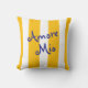 This pillow's elegant, playful striped pattern features colorful yellow orange marigold and white stripes, with whimsical chic script that says "Amore Mio" in bright blue. This upbeat, bright design will add sun-drenched color to your home, with a nod to the Italian coast.