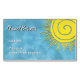 Cute digital painting of a yellow sunshine in blue sky. Hand drawn style design. White text. Custom business cards. Edit text to customize. For personal and business use.