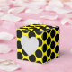 Add a playful touch to your celebration with these Bright Yellow with Black Dot Style Heart Favor Boxes (2x2x2 inches). Perfect for holding small treats, candies, or tokens of appreciation, these charming boxes combine a fun heart shape with vibrant yellow and bold black dots, making them ideal for parties, weddings, and special events.
