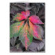 En lysande färgad faller löv i skuggor av magenta, rött, orange, gult, guld och grönt framträder häpnadsväckande mot bakgrund av grått och brunt höstskräp och gräs.