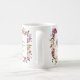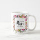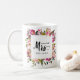 Före bröllop, visa ditt framtida nya efternamn med detta roliga framtida MRS. Typografi MUGG med en blommigt ram av lila och rosa ros och löv samordnat med briljant Bloom bröllop insamling och tillbehör.