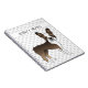 Desteis ursprungliga tecknad illustrerar en söt brindle och vit jacka färg Boston Terrier-hund. Bakgrunden har mönster i grått hund tass avtryck. Det finns också ett anpassningsbara textområde för en rubrik.