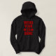 This hoodie is much better than I expected. top quality, true sizing, and really comfy. I was a bit worried that the lettering would be too dark on the navy blue hoodie, but once it arrived it was perfect. Easy to see the words, and the quality of the wording is fabulous. I will be buying more hoodies in future