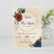 Unik spara datumkortet med romantisk bränd orange och marinerade löv för blåa blommor och grönt. OM DU VILL HA MER MATCHING PRODUCTS klickar du på samlingen ovan eller kontaktar mig.