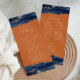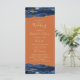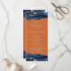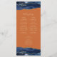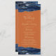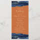 Den här eleganten har det moderna bröllopsprogrammet en marin blå vattenfärgsagat överst och grund gräns trimmad med guld faux glitter. Texten visas i handstil för elegant guld-färgad och typsnitt på en bränd orange.