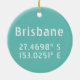 Modern keepsaké med koordinaterna Latitud och longitud karta för Brisbane QLD Australien i vitt modernt stadsteckensnitt på akvatisk bakgrund