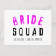 Cute, enkel, snyggt "Bride Squad", citerar konst med modernt, minimalistiskt typografi i svart och hett nyare rosa i ett coola trendig stil. Slagordet, namn och rollen kan lätt vara personlig med namnen i brudens sida, till exempel brud, brudtärnor, blomsterflickor, Budens mamma, Glam Squad och så mycket mer! Matchning av perfekt, samordning av tillbehör till gruppbrider för en möhippa, en bachelorette fest eller bröllop morgon med en toppen söt eller en personlig beröring!