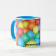 Färgrik bollsjal runt om denna gladlynt mugg. Tillfoga ett meddelande: Grattis på födelsedagen, lycklig fars dag eller något som du väljer -- klicka precis skräddarsy. Välj också din egna färg för den mugghandtaget eller insidan eller gör en pendlare att råna eller steinen!