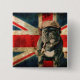 Knappen Whimsic och roligt med den brittiska Flagga och en Pug