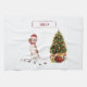 Ett stiligt brittany hund aveln är sitta vid sidan av ett dekorerat Julgran. Paket väntar på att öppnas! Hund bär en tomathatt med en röd buggslips. Lustigt att skicka den här julhelgen!