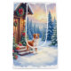 Share warm holiday wishes with this festive Christmas card featuring a cheerful Brittany beside a rustic cabin decorated for the season. Illustrated in a cozy watercolor style with softly falling snow and glowing lantern accents, this design captures the charm of winter celebrations. The blank layout offers plenty of room for your personal message, making it perfect for dog lovers and festive stationery fans.